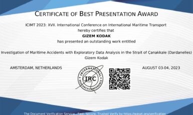 Girne Üniversitesi Deniz İşletmeciliği ve Yönetimi Fakültesi Dekan V. Yrd. Doç. Dr. Gizem KODAK, Amsterdam’da Gerçekleştirilen XVII. International Conference on International Maritime Transport’ da En İyi Sunum Ödülünü Kazandı